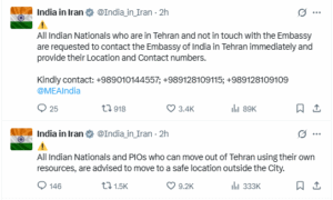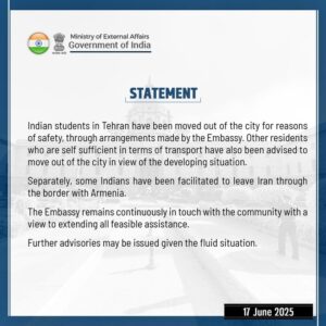 – जो भारतीय नागरिक अपने साधनों से तेहरान छोड़ सकते हैं, उन्हें शहर से बाहर सुरक्षित स्थान पर जाने की सलाह दी गई है.