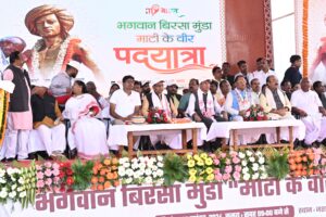 मुख्यमंत्री श्री साय ने माटी के वीर पदयात्रा समारोह में शामिल होने के लिए केंद्रीय श्रम और खेल मंत्री मनसुख मांडविया के प्रति आभार व्यक्त किया। उन्होंने कहा कि पदयात्रा बेहद सफल रही। उम्मीद से ज्यादा युवा पदयात्रा में शामिल हुए। लोगों को आदिवासी संस्कृति और जनजीवन को निकट से देखने का मौका मिला। धरती आबा भगवान बिरसा मुंडा की जय, जयकार से पूरा स्टेडियम गुंज उठा। उप मुख्यमंत्री अरुण साव ने कहा कि भगवान बिरसा मुंडा की जयंती के उपलक्ष्य में जशपुर में ऐतिहासिक पदयात्रा आयोजित की गई। बिरसा भगवान पहले लोगों के लिए अल्पज्ञात थे। प्रधानमंत्री नरेंद्र मोदी जी के प्रयासों से आज पूरे भारत में लोकप्रिय हुए हैं। उन्होंने अन्याय के खिलाफ अंग्रेजों से लोहा लिया। अपने जीवन की परवाह किए बिना लोगों को उनका हक दिलाने नेतृत्व किया। घनघोर अत्याचार सहे। युवाओं को देश को विकसित बनाने के अभियान में उनसे प्रेरणा लेनी चाहिए। एकजुट होकर युवा भारत का नेतृत्व संभालने आगे आएं।