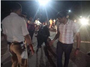 इस दौरान लगभग 7:30 बजे अतिरिक्त पुलिस अधीक्षक अनिल कुमार सोनी का वाहन उसी रास्ते से गुजर रहा था। उनकी नजर सड़क पर गिरी पड़ी गाय पर पड़ी। बिना समय गंवाए उन्होंने अपने वाहन को रुकवाया और खुद ही गाय की मदद के लिए आगे बढ़े।अति पुलिस अधीक्षक ने मौके पर वेटनरी डॉक्टर को बुलाया और गाय का इलाज कराया। डॉक्टरों की तत्परता और अतिरिक्त पुलिस अधीक्षक की मानवीयता की बदौलत गाय को तुरंत उपचार मिला और उसकी हालत में सुधार आया।
