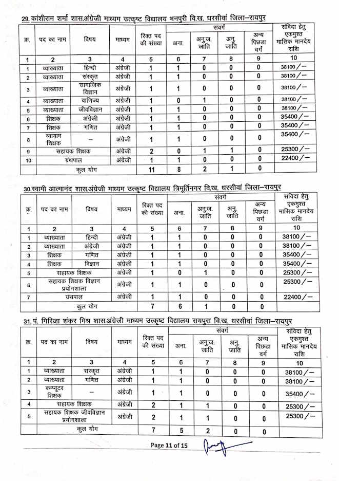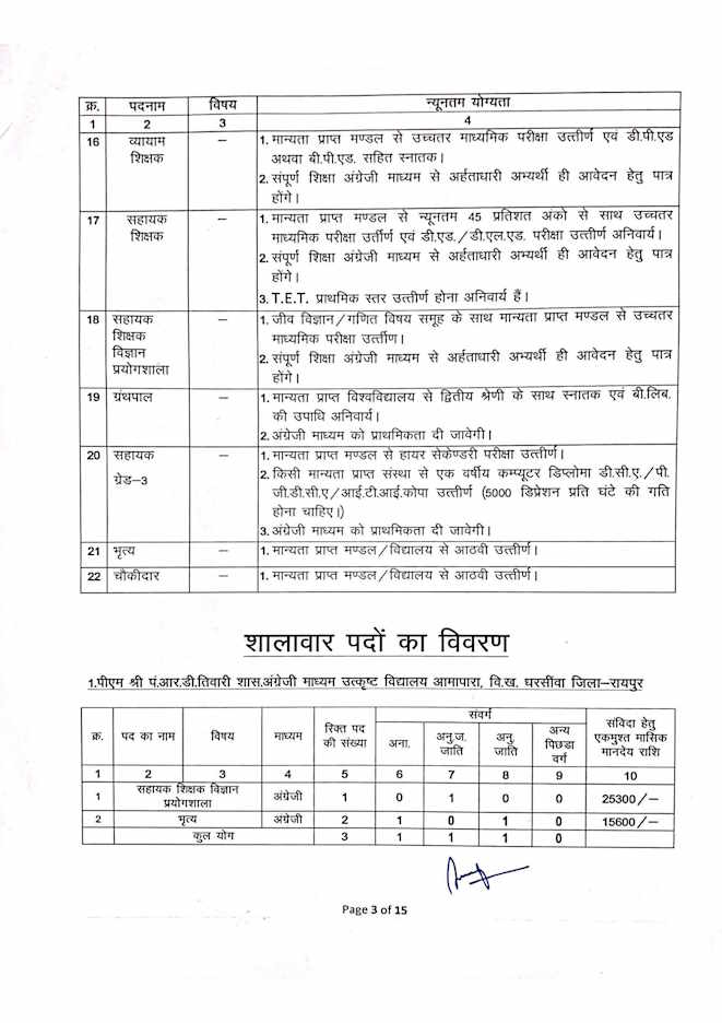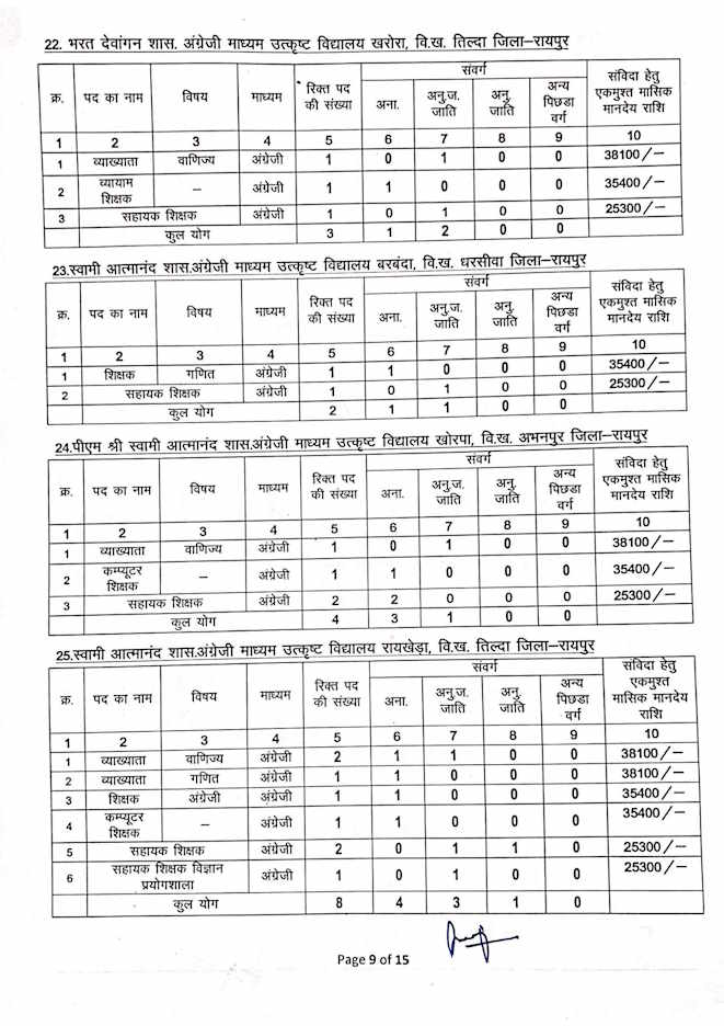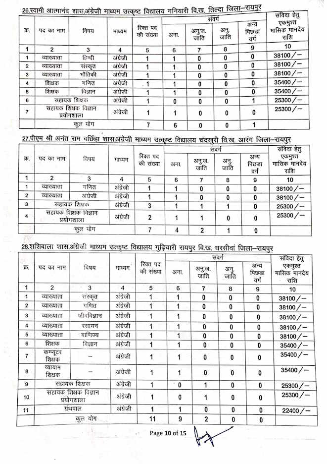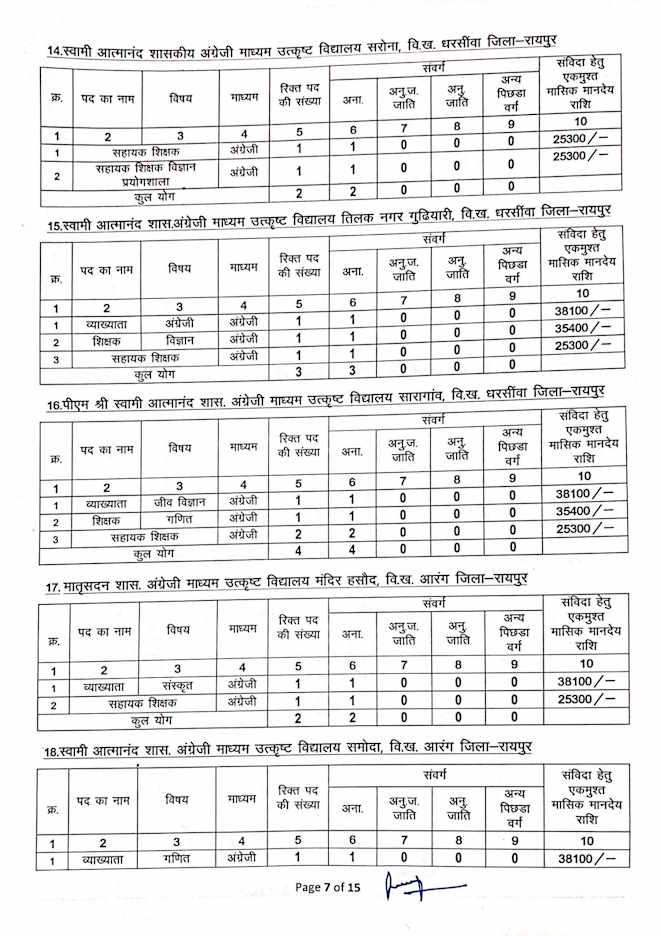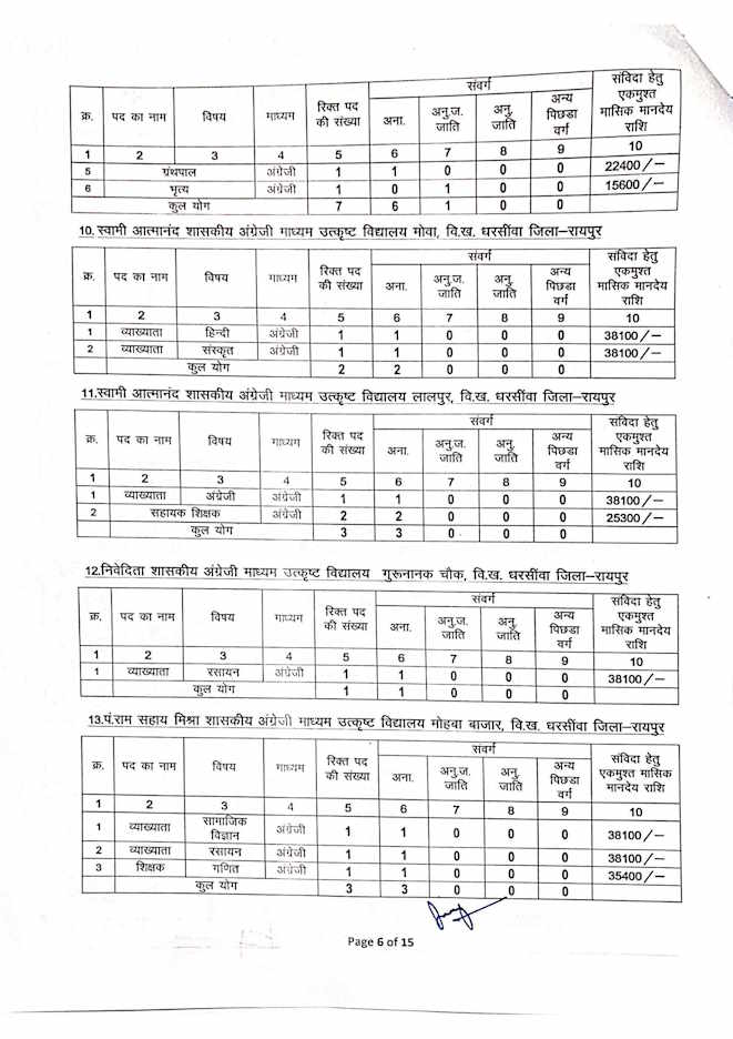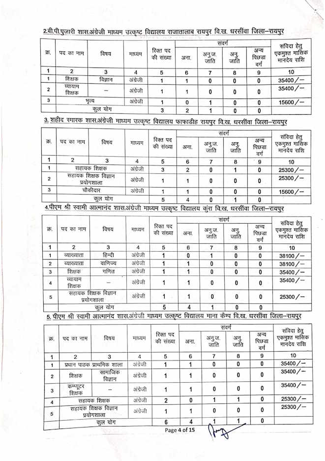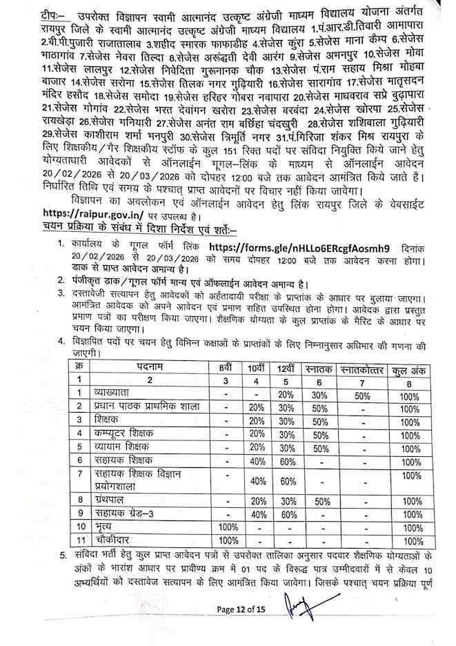 रायपुर। छत्तीसगढ़ में शिक्षा क्षेत्र में रोजगार की तलाश कर रहे अभ्यर्थियों के लिए बड़ी खबर है। स्वामी आत्मानंद उत्कृष्ट अंग्रेजी माध्यम विद्यालय योजना के अंतर्गत रायपुर जिले में शिक्षकीय और गैर-शिक्षकीय स्टाफ के कुल 151 रिक्त पदों पर संविदा भर्ती की जाएगी। इसके लिए योग्य उम्मीदवारों से ऑनलाइन आवेदन आमंत्रित किए गए हैं।