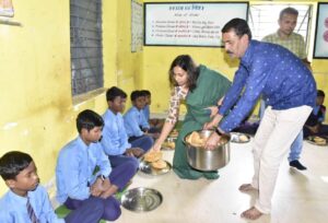 इन बच्चों को भोजन परोसा। साथ ही सीईओ जिला पंचायत सुश्री प्रतिष्ठा ममगाई एवं अन्य अधिकारियों ने स्कूली बच्चों के साथ पंगत में बैठकर भोजन किया। इस दौरान कमिश्नर ने जनसहभागिता से सभी माध्यमिक शाला और प्राथमिक शालाओं में न्यौता भोज का आयोजन सुनिश्चित किए जाने के निर्देश सम्बन्धित अधिकारियों को दिए।