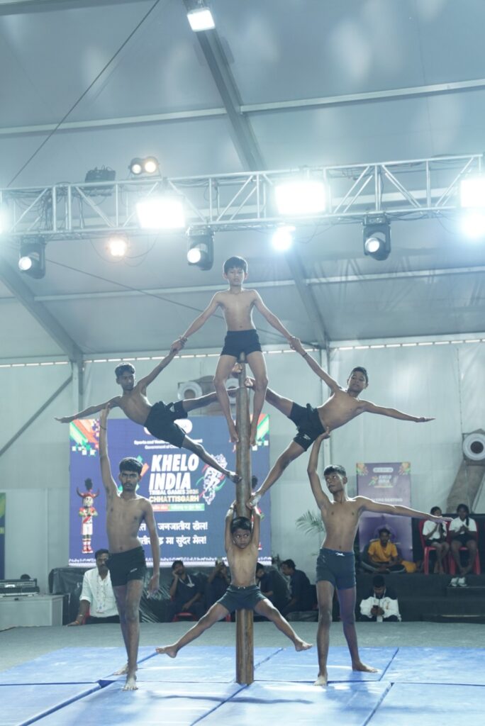 अंबिकापुर,03अप्रैल2026/खेलो इंडिया ट्राईबल गेम्स 2026 के अंतर्गत सरगुजा जिले के अम्बिकापुर के गांधी स्टेडियम में आयोजित डेमो खेल मल्लखंभ प्रतियोगिता का शानदार समापन शुक्रवार को हुआ। प्रतियोगिता में खिलाड़ियों ने रोप मल्लखंभ, पोल मल्लखंभ, हैंगिंग मल्लखंभ, पिरामिड मल्लखंभ में एक से बढ़कर एक करतब दिखाए। खिलाड़ियों के प्रदर्शन पर वहां मौजूद दर्शकों द्वारा तालियां बजाकर उनका उत्साहवर्धन किया गया। प्रतियोगिता के बाद विजेता टीम घोषित किया गया। आज हुई प्रतिस्पर्धा में छत्तीसगढ़ की बालिका टीम उत्कृष्ट प्रदर्शन के साथ विजेता घोषित की गई।