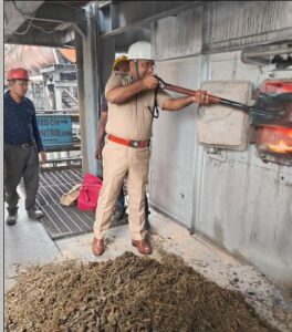NDPS Act : आज की गयी नष्टीकरण की कार्यवाही में जिला महासमुंद के 443 एनडीपीएस के प्रकरणों में कुल 22631.269 किलोग्राम, गांजा, जिला बलौदा बाजार के 05 प्रकरणों में कुल 224. 650 किलोग्राम गांजा, जिला धमतरी के 08 प्रकरणों में कुल 328.768 किलोग्राम गांजा एवं जिला गरियाबंद के 16 प्रकरणों में कुल 309.226 किलोग्राम गांजा को विधिवत् जन सामान्य की सुरक्षा को ध्यान में रखते हुए, पर्यावरण विभाग के अनुमति उपरांत रायपुर के सिलतरा स्थित पावर प्लांट के भट्ठी/फर्नेस में जलाकर नष्ट किया गया।