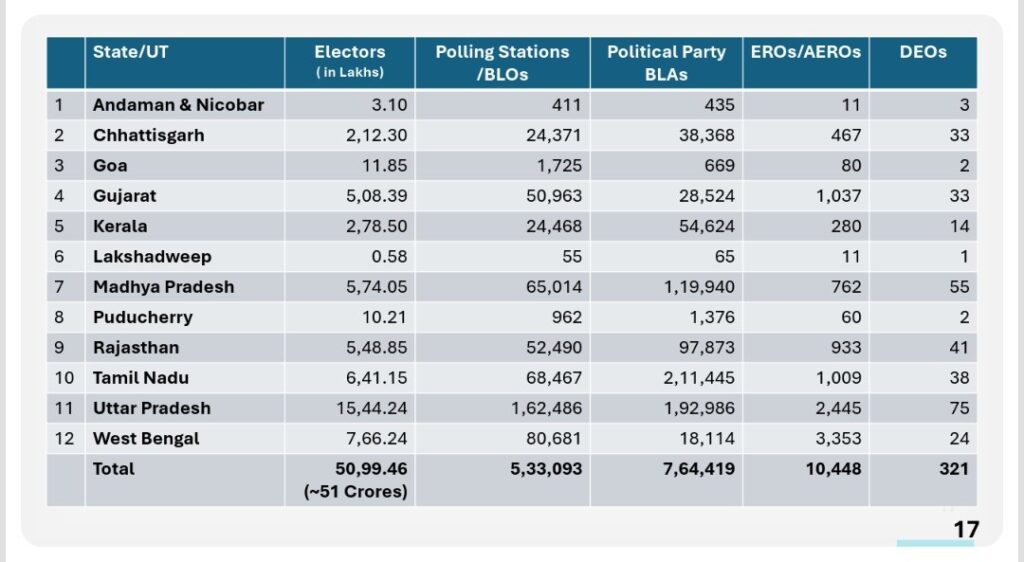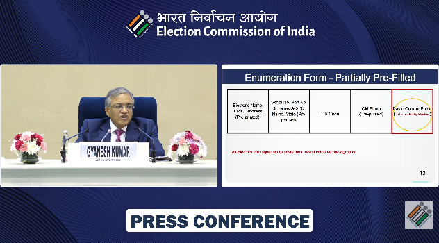 नई दिल्ली। चुनाव आयोग ने देश के 12 राज्यों और केंद्र शासित प्रदेशों में ‘विशेष गहन पुनरीक्षण’ (SIR) के दूसरे चरण की आधिकारिक घोषणा कर दी है। मुख्य चुनाव आयुक्त ज्ञानेश कुमार ने गुरुवार को प्रेस कॉन्फ्रेंस को संबोधित करते हुए इसकी पुष्टि की।