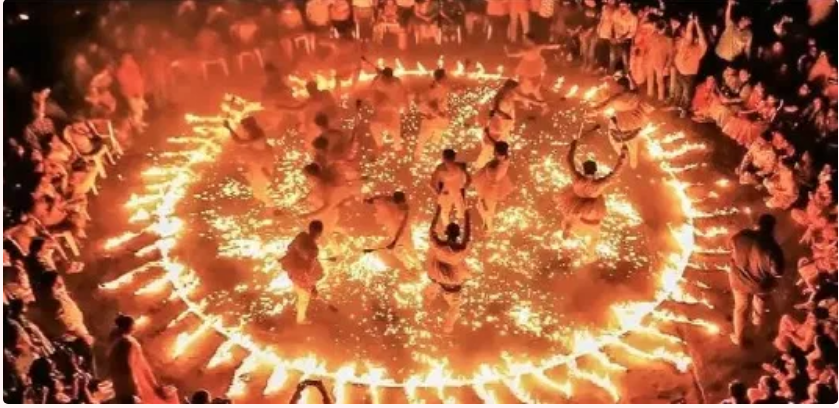 इस रास की परंपरा 70 साल पुरानी बताई जाती है। शुरुआत में कपास के बीज जलाकर अंगारे बनाए जाते हैं। फिर युवा हाथों में मशाल लेकर और अंगारों पर कदम रखते हुए गरबा करते हैं।