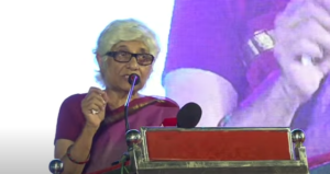 प्रो. अपूर्वा नंद ने कहा कि आज के आयोजन से ही पता चल जाता है कि छत्तीसगढ़ में सवाल खोजना कितना मुश्किल है और उसका जवाब भी कितना मुश्किल है यह आज के आयोजन से हमें पता चल जाता है.आज हम खुले में बैठे है जो गलत नही पर यह जगह हमें 24 घंटे के भीतर मिली है- लोग कहते हैं हम जनतंत्र में रहते हैं.भारत जिस दौर में है क्या भारत को उन सवालों का अहसास है जो उन्हे पूछना चाहिए. लेकिन उन्हे अहसास कौन कराएगा.