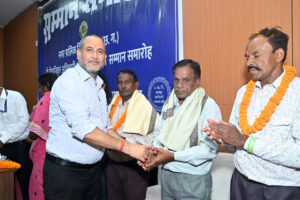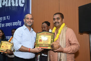 रायपुर। नगर पालिक निगम रायपुर के कर्मचारी एकता संघ के तत्वावधान में नगर निगम मुख्यालय के चतुर्थ तल पर सामान्य सभा सभागार में आयोजन रखकर नगर निगम रायपुर की सेवा से सेवानिवृत्त कार्यपालन अभियंता श्री के.के. शर्मा, कर्मचारी सर्वश्री रामकृष्ण वर्मा, कांशीनाथ शर्मा, तुलाराम साहू का नगर निगम अपर आयुक्त श्रीमती कृष्णा खटीक, श्री विनोद पाण्डेय, उपायुक्त श्री डी.के. निर्मलकर, सुश्री राजेश्वरी पटेल, जोन कमिश्नर श्री विवेकानंद दुबे, मुख्य अभियंता श्री यू.के. धलेन्द्र, अधीक्षण अभियंता श्री राजेश राठौर, सेवानिवृत्ति राजस्व अधिकारी श्री अरूण दुबे, सहायक राजस्व अधिकारी श्री सुरेन्द्र दुबे, प्रेस मैनेजर श्री सुमंगल उपाध्याय, वरिष्ठ लिपिक श्री हरगोविंद जोशी प्रेस विभाग से श्री पीयूष अग्रवाल, वित्त विभाग के वरिष्ठ अधीक्षक श्री मोहित एवं श्याम सोनी जी की उपस्थिति में मंच में श्रीफल शॉल, स्मृति चिन्ह प्रदत्त कर उनकी सेवाओं को सम्मानित किया गया।