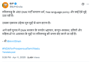 अमित शाह ने कहा, एक प्रकार से AIADMK 1998 से NDA गठबंधन का हिस्सा है और लंबे समय तक मोदी जी और जयललिता जी ने साथ मिलकर राष्ट्रीय राजनीति में काम किया है. “आज हमने एक महत्वपूर्ण निर्णय लिया है. एआईएडीएमके, भाजपा और एनडीए के सभी सहयोगी दल तमिलनाडु में एकजुट होकर चुनाव लड़ेंगे. यह गठबंधन राज्य के विकास और जनता के हित में मजबूत सरकार बनाने के लिए प्रतिबद्ध है.“
