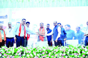 उन्होंने बताया कि लघु उद्यमियों के उत्पाद सामग्रियों को विदेशों में एक्सपोर्ट करने सुविधा प्रदान की जाएगी सम्मेलन के प्रथम सत्र की शुरुआत लघु उद्योग भारती के संगठन मंत्री राजेश मिश्रा, प्रकाशचन्द्र गुप्त और पुरुषोत्तम पटेल ने मां भारती और भगवान विश्वकर्मा के तैलचित्र के समक्ष दीप प्रज्ज्वलित कर किया। इस मौके पर संगठन के उपाध्यक्ष ताराचंद गोयल ने सम्मेलन को सम्बोधित करते हुए कहा कि संगठन में एक बड़ी ताकत होती है, जिससे उसके विकास से कोई नहीं रोक सकता । उद्यमी गोयल ने कहा कि उद्यमियों को अपने उद्यम के प्रति जागरूक होना जरूरी है। उद्यम में उतार-चढ़ाव आते रहते हैं, समस्याओं का धैर्यता और संयम से सामना करना चाहिए। समस्याओं के समाधान से उद्यमी नित प्रतिदिन विकास की और अग्रसर होगा। इस दौरान उन्होंने भारत को विश्व गुरु बनाने के लिए महत्वपूर्ण योगदान देने पर जोर दिया। साथ ही, उन्होंने उद्यमियों को अपने उद्यम के प्रति जागरूक करते हुए कहा कि उद्यम के लिए चिंतन करने से निश्चित ही विकास कार्य मे तेजी आएगी, वहीं राष्ट्र निर्माण भी बेहतर होगा।