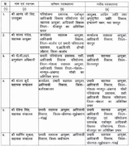 इसके अलावा, अन्य अधिकारियों जैसे उपायुक्त, सहायक आयुक्त, अनुसंधान अधिकारी और सहायक संचालकों को भी अस्थायी रूप से नए पदों पर नियुक्त किया गया है।