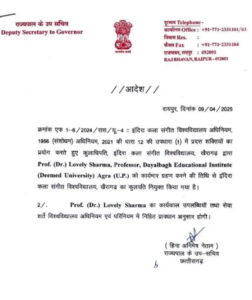 बता दें डॉ लवली शर्मा वर्तमान में आगरा के दयालबाग शैक्षणिक संस्थान स्किल डेवलपमेंट विभाग की प्रोफेसर और विभागाध्यक्ष भी हैं.