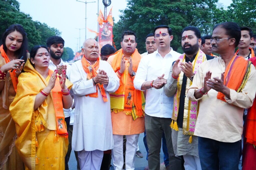 कार्यक्रम की शुरुआत सिविक सेंटर से निकली विशाल भगवा रैली से हुई। इस रैली में विभिन्न प्रखंडों से आए श्रीराम भक्तों और युवाओं ने उत्साहपूर्वक भाग लिया। भगवा ध्वजों और जयघोष से पूरा मार्ग गूंज उठा। रैली में नगर के अनेक सामाजिक संगठनों के सदस्य भी शामिल हुए, जिन्होंने अपनी उपस्थिति से आयोजन को और अधिक भव्य बना दिया। रैली के दौरान श्रद्धालुओं ने “जय श्रीराम” के नारों से वातावरण को धर्ममय कर दिया। रैली पश्चात सेक्टर-09 चौक पर विशाल भगवा ध्वजारोहण किया गया। ध्वजारोहण के साथ ही श्रद्धालुओं ने सामूहिक रूप से श्री हनुमान चालीसा का पाठ किया। हजारों की संख्या में उपस्थित भक्तों ने एक स्वर में चालीसा का पाठ कर आस्था और ऊर्जा का अद्वितीय संगम प्रस्तुत किया। इसके बाद भव्य महाआरती संपन्न हुई, जिसमें श्रद्धालुओं ने दीप जलाकर प्रभु श्रीराम और हनुमान जी के चरणों में अपनी श्रद्धा अर्पित की।
