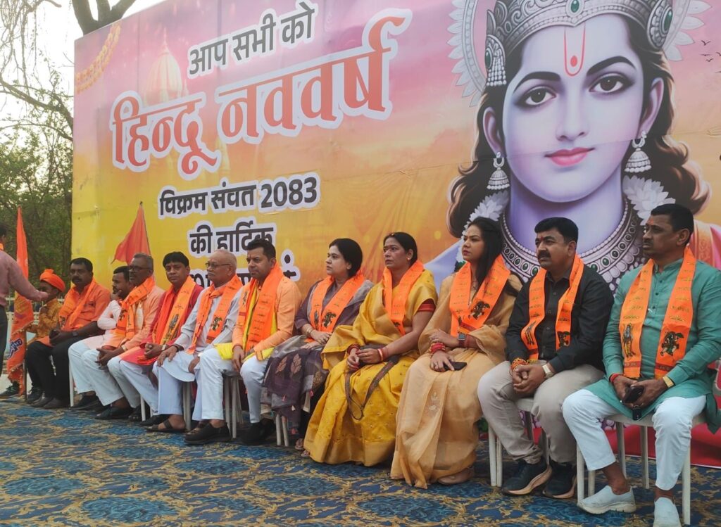 भिलाई । हिन्दू नववर्ष विक्रम संवत 2083 के पावन अवसर पर श्रीराम जन्मोत्सव समिति भिलाई द्वारा आज सेक्टर-09 चौक में भव्य आयोजन किया गया। इस अवसर पर विशाल भगवा ध्वजारोहण किया गया, सामूहिक रूप से श्री हनुमान चालीसा का पाठ हुआ और श्रद्धालुओं ने मिलकर भव्य महाआरती की। आयोजन स्थल पर उमड़े जनसैलाब ने पूरे वातावरण को भक्तिमय और ऊर्जावान बना दिया। कार्यक्रम पश्चात समिति के सदस्यों एवं पदाधिकारियों द्वारा हनुमान मंदिर सेक्टर 09 में बजरंग बली का आशीर्वाद प्राप्त किया गया।