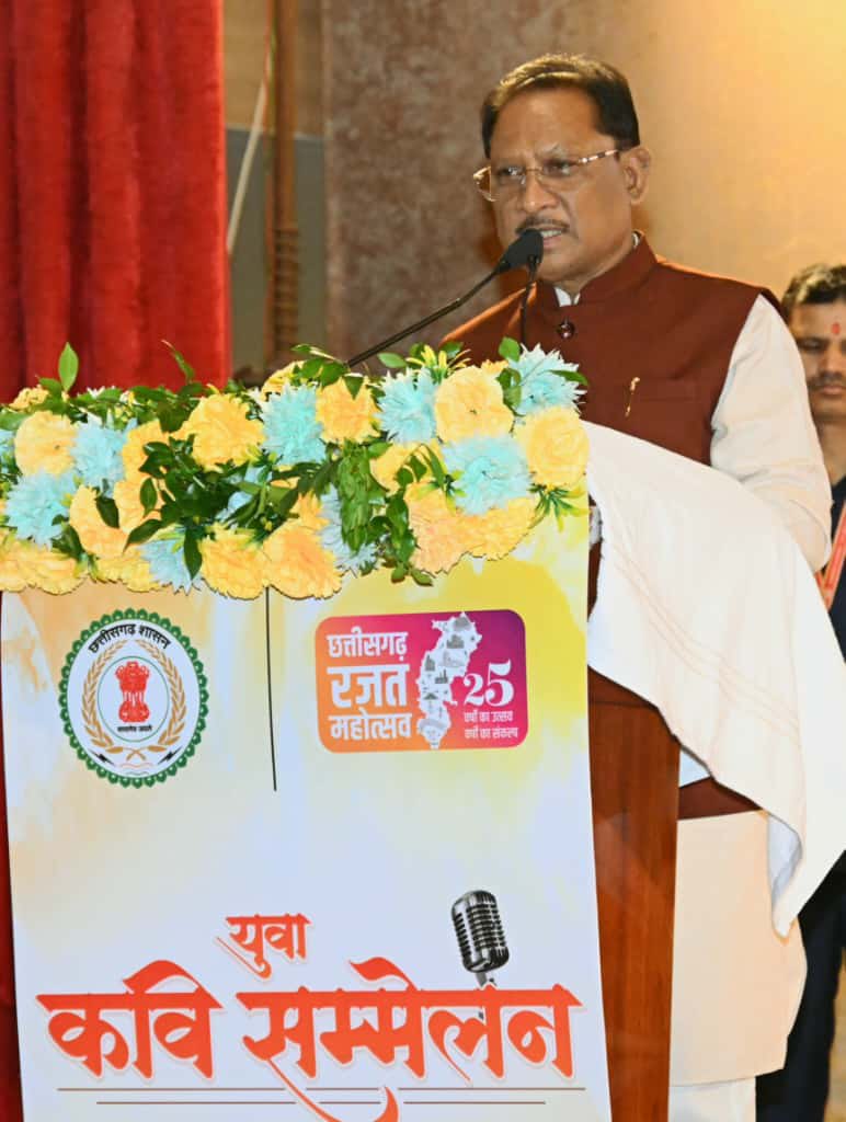 उन्होंने उदाहरण देते हुए कहा कि जब खेतों में बुआई का समय आता है, तो पूरे वातावरण में ददरिया की मधुर ध्वनि गूंजती है। यहाँ विविध वाद्य, गीत, नृत्य और लोककलाओं की अनूठी परंपरा रही है। श्री साव ने कहा कि यह प्रदेश संतों, महात्माओं और कवियों की कर्मभूमि रहा है, जहाँ से समाज को सदैव नई दिशा मिली है। उन्होंने प्रदेशभर से आए युवा कवियों के उज्ज्वल भविष्य की कामना करते हुए उन्हें अपनी रचनाओं के माध्यम से समाज में सकारात्मक परिवर्तन लाने का आह्वान किया।