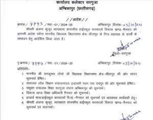 Personal assistant : सीतापुर ! सीतापुर विधानसभा के मैनपाट विकाश खण्ड के शासकीय हाई स्कूल कतकालो में व्याख्याता के पद में पदस्थ अंजना कुजूर को आज सरगुजा कलेक्टर ने सीतापुर विधायक रामकुमार टोप्पो का निज सहायक नियुक्त किया है .