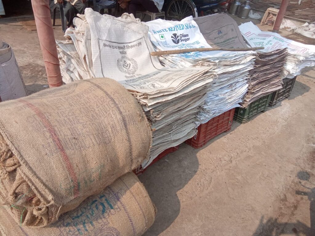 भाटापारा- सीजन खत्म। 50 फीसदी टूट के बाद ओल्ड जूट बैग सिर्फ 8 से 9 रुपए प्रति नग। खरीदी में मात्रा बढ़ाई तो 1 से 2 रुपए की छूट की संभावना। प्लास्टिक की बोरियां तो किलो हिसाब में मिल जा रहीं हैं।