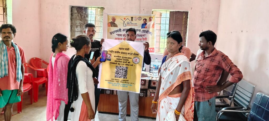 कलेक्टर संबित मिश्रा के मार्गदर्शन पर जिला पंचायत मुख्य कार्यपालन अधिकारी श्रीमती नम्रता चौबे के निर्देशन में इस माह आयोजित रोजगार दिवस में जाबकार्डधारी श्रमिकों का ई- केवाईसी करने के साथ ही क्यू आर कोड स्कैन कर ग्रामीणों को अपने मोबाइल से मनरेगा अंतर्गत पिछले 4 वित्तीय वर्षों के पूर्ण, प्रगतिरत और अप्रारंभ कार्यों की जानकारी प्राप्त करने के तरीके प्रायोगिक रूप से कर समझाया गया।