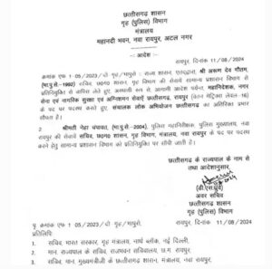 Raipur Big News : IPS अरुण देव गौतम को डीजी नगर सेना , नागरिक सुरक्षा और अग्निशमन सेवाएं छत्तीसगढ़ के पद पर किया पदस्थ, IPS नेहा चंपावत को प्रतिनियुक्ति पर भेजा गया सामान्य प्रशासन विभाग