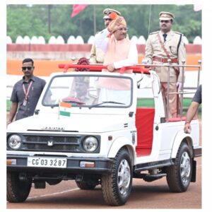 Raipur breaking : रायपुर ! मुख्यमंत्री विष्णुदेव साय ने कहा है कि प्रधानमंत्री श्री नरेन्द्र मोदी द्वारा भारत को वर्ष 2047 तक विकसित देश बनाने के संकल्प में छत्तीसगढ़ प्रभावी भूमिका अदा कर रहा है। हमारी सरकार विकसित छत्तीसगढ़ के संकल्प को लेकर राज्य के चहुंमुखी विकास के लिए नई-नई योजनाएं तैयार कर रही है। उन्होंने राज्य की जनता को 78वें स्वतंत्रता दिवस की बधाई और शुभकामनाएं देते हुए कहा कि हमारे पूर्वजों के कठिन संघर्ष और बलिदान से हमें आजादी मिली है।