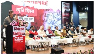 राष्ट्रीय सह संगठन महामंत्री शिवप्रकाश ने अपने संबोधन में कहा कि आज का दिन हमें बताता है कि हमें गलतियों की पुनरावृत्ति नहीं होने देना है, जो समाज और देश अपनी पिछली गलतियों को सुधारते हुए भविष्य की नीतियों का अवलंबन करता है वो समाज और देश आगे बढ़ता है। यह हमें आगे के गौरवमयी भविष्य गढ़ने की भी सीख देता है। 15 अगस्त 1947 को हम स्वतंत्र हुए, कल 78वां स्वतंत्रता दिवस हम मना रहे हैं। लेकिन जब देश स्वतंत्रता के जश्न में डूबा था दूसरी ओर लाखों परिवार के घर टूटकर बिखर गए थे, 2 लाख से लेकर 20 लाख तक की आबादी हत्या की शिकार हुई। करोड़ों लोगों को अपनी ही भूमि से निर्वासित होना पड़ा।