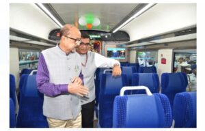 Raipur Breaking : कार्यक्रम के पूर्व डेका ने वंदे भारत ट्रेन के अन्दर जाकर उपस्थित यात्रियों से बात-चीत की एवं उन्हें बधाई व शुभकामनाएं दी।