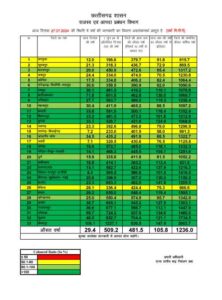 इसी प्रकार, रायपुर जिले में 461.5 मिमी, बलौदाबाजार में 601.8 मिमी, गरियाबंद में 563.7 मिमी, महासमुंद में 411.9 मिमी, धमतरी में 591.9 मिमी, बिलासपुर में 481.5 मिमी, मुंगेली में 526.7 मिमी, रायगढ़ में 392.6 मिमी, सारंगढ़-बिलाईगढ़ में 233.0 मिमी, जांजगीर-चांपा में 435.2 मिमी, सक्ती में 329.5 कोरबा में 572.7 मिमी, गौरेला-पेण्ड्रा-मरवाही में 468.3 मिमी, दुर्ग में 335.8 मिमी औसत वर्षा दर्ज की गयी।