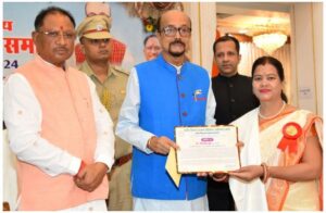 राजभवन के दरबार हॉल में आज आयोजित राज्यस्तरीय समारोह में तीन उत्कृष्ट शिक्षकों बिलासपुर जिले की डॉ. रश्मि सिंह धुर्वे को डॉ. पदुमलाल पुन्नालाल बख्शी स्मृति पुरस्कार, कबीरधाम जिले के राजर्षि पाण्डेय को डॉ. मुकुटधर पाण्डेय स्मृति पुरस्कार और दुर्ग जिले की डॉ. सरिता साहू को डॉ. बलदेव प्रसाद मिश्र स्मृति पुरस्कार से सम्मानित किया गया। इस तरह प्रधान पाठक, व्याख्याता, व्याख्याता एल.बी., शिक्षक एल.बी., सहायक शिक्षक, सहायक शिक्षक एल.बी वर्ग के 52 शिक्षकों को राज्य स्तरीय शिक्षक सम्मान से सम्मानित किया गया।