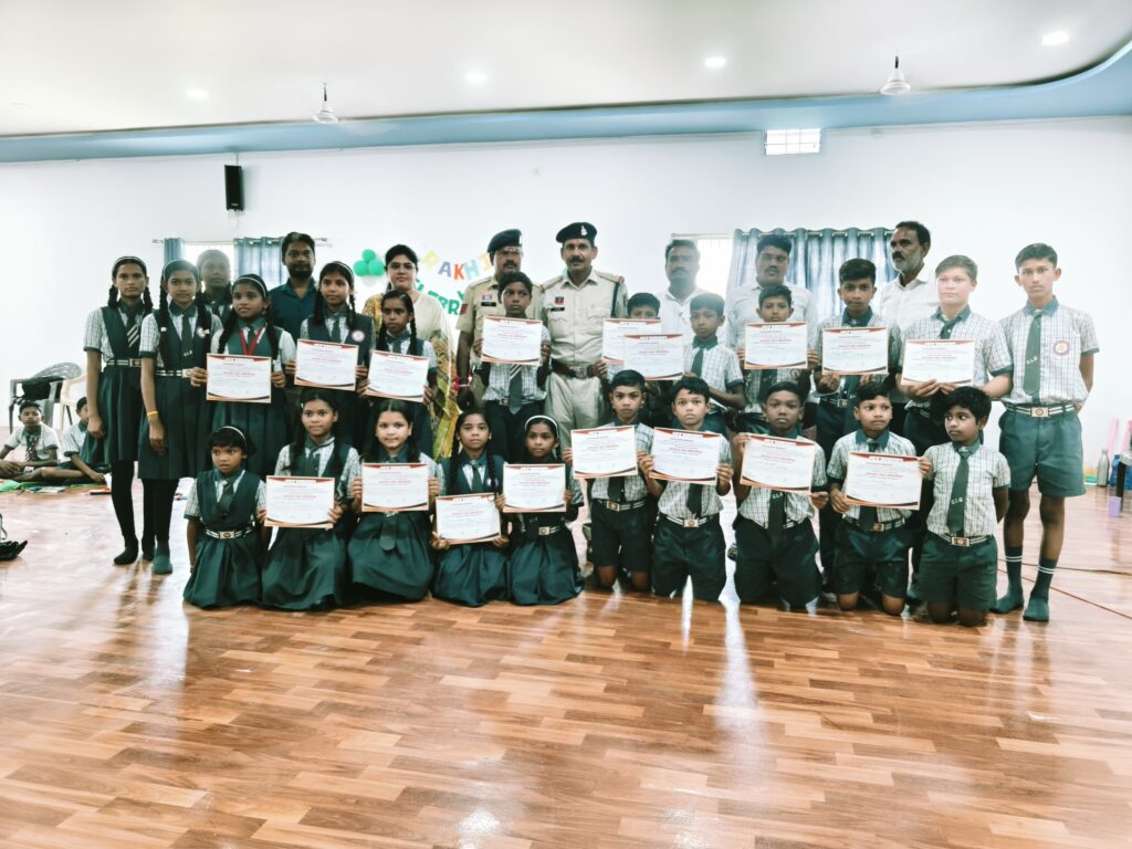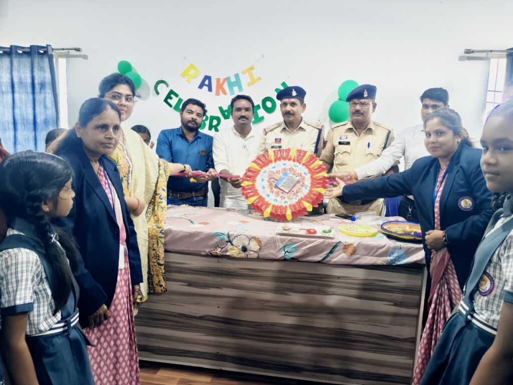 स्कूल में बच्चों द्वारा अपने हाथों से राखी बनाकर एस.आई.,सरपंच एवं उपस्थित पदाधिकारी गणों को राखी पहनाया गया । एस. आई.गोकुल पटेल ने बच्चों को यातायात नियमों, साइबर क्राइम के बारे में बताते हुए बच्चों की सुरक्षा का आश्वासन दिया।