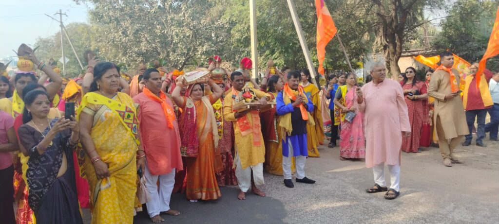 भिलाई. वीआईपी नगर, फेस-2, शिव मंदिर के पास, रिसाली में 7 से 15 दिसंबर तक नौ दिवसीय त्रिवेणी ज्ञान यज्ञ सप्ताह के पहले दिन भव्य कलश यात्राएं निकाली गईं, जिसमें सैकड़ों महिलाओं और कुंवारी कन्याओं ने सिर पर कलश रखकर, मंगल गीत गाते हुए और ढोल-नगाड़ों के साथ नगर भ्रमण किया, जिससे पूरा वातावरण भक्तिमय हो गया.