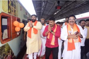 Ramlala Darshan : बेलतरा विधायक सुशांत शुक्ला व जि .प अध्यक्ष अरुण सिंह चौहान ने ट्रेन को दिखाई हरी झंडी