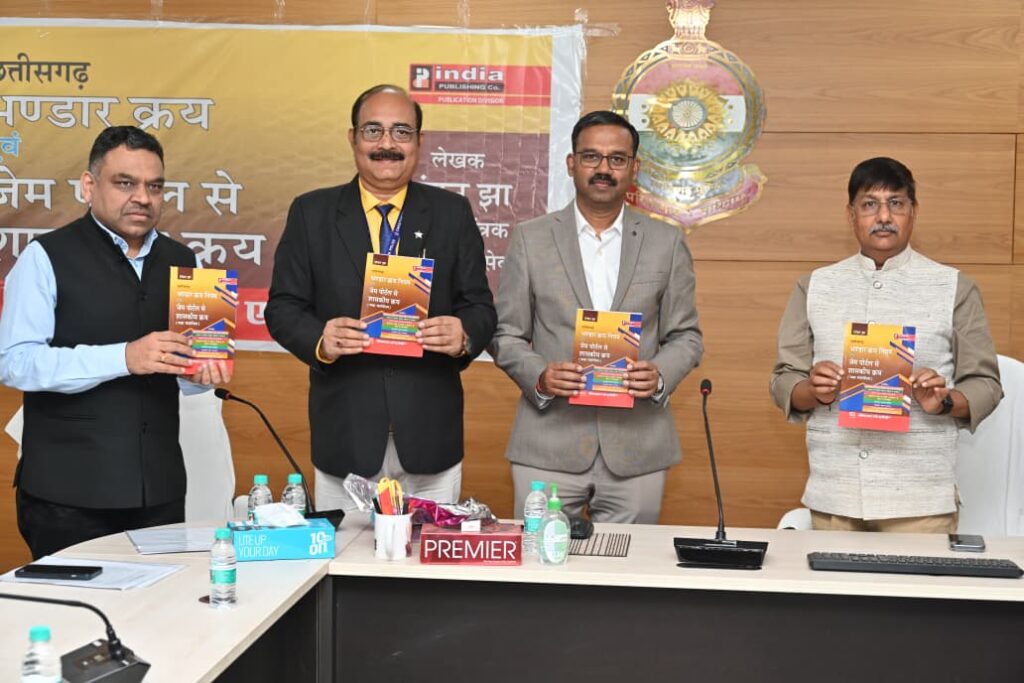 रायपुर: छ.ग. भण्डार क्रय नियम एवं जेम पोर्टल से शासकीय क्रय पुस्तक का विमोचन पुलिस मुख्यालय नवा रायपुर में पदस्थ राज्य वित सेवा के वित नियंत्रक शंकर झा द्वारा छ.ग. भण्डार क्रय नियम एवं जेम पोर्टल से शासकीय क्रय नामक पुस्तक लिखी गई है.