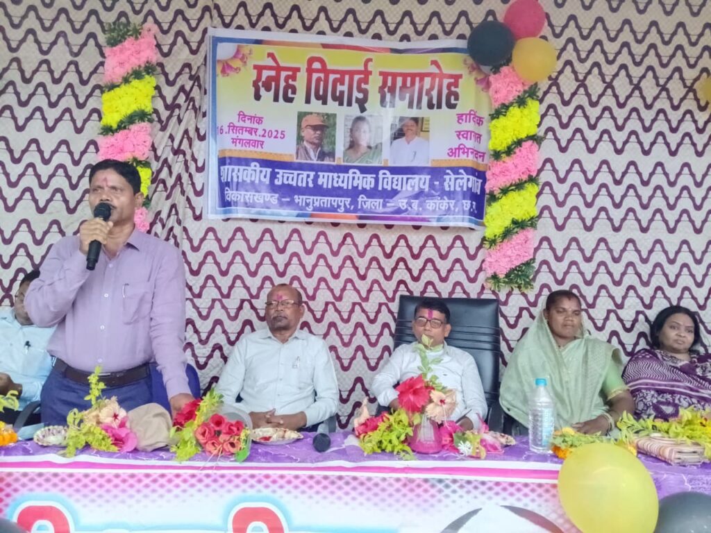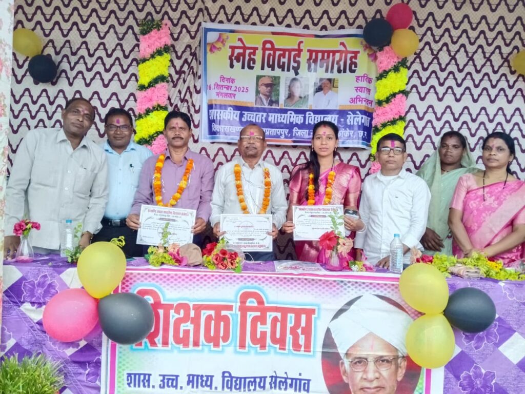 कुछ ऐसे ही कार्य विगत 15 वर्षों से कर रहे शासकीय उच्चतर माध्यमिक विद्यालय सेलेगाँव के प्रभारी प्राचार्य गौतम राम नायक, व्याख्याता रैनसिंह दर्रो एवम् श्रीमती जागृति ध्रुव को शाला परिवार की ओर से भावभीनी विदाई दी गई।