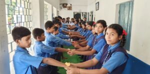 जिसमें छात्र-छात्राओं ने बढ चढ़ कर भाग लेते हुए घरेलू सामग्रियों के उपयोग से सुंदर- सुंदर राखियां बनाई। बच्चों के द्वारा बड़ी रखी तैयार कर वृक्ष को भी रक्षासूत्र बांधकर पर्यावरण संरक्षण एवं सुरक्षा का संदेश दिया।