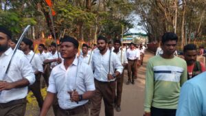 बचेली। नगर में राष्ट्रीय स्वयंसेवक संघ द्वारा मकर संक्रांति के पावन अवसर पर 14 जनवरी, मंगलवार को पथ संचलन निकाला गया। सर्वप्रथम नगर के हॉकी मैदान में आयोजित कार्यक्रम में आरएसएस का ध्वजारोहण कर तत्पश्चात भारतमाता की छायाचित्र पर माल्यार्पण किया गया। सैकड़ो की संख्या में उपस्थित आरएसएस कार्यकर्ताओ का पंथसंचालन शुरू हुआ।