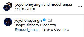 हनी ने वीडियो को कैप्शन दिया- “हैप्पी बर्थडे क्लियोपेट्रा मॉडल एम्मा।”* इस पोस्ट के बाद से फैंस और फिल्म जगत के लोगों में चर्चा शुरू हो गई है कि क्या दोनों के बीच रोमांटिक रिश्ता है.