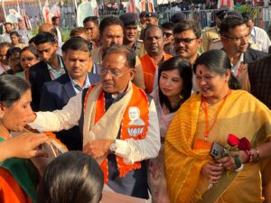 सक्ती।  मुख्यमंत्री विष्णुदेव साय उप मुख्यमंत्री अरुण साव सांसद कमलेश जांगड़े का मंच में कलेक्टर अमृत विकास तो अपनों पुलिस अधीक्षक अंकित शर्मा एवं जनप्रतिनिधि जिले से आए हुए कार्यकर्ताओं ने पुष्प गुछ माला पहनाकर सभी का स्वागत किया मुख्यमंत्री विष्णु देव साय एवं सभी अतिथियों के द्वारा कलेक्ट्रेट कार्यालय परिसर जेठा के सामने मैदान में जिलें के विभिन्न विकास कार्यों का भूमिपूजन, लोकार्पण एवं हितग्राही सम्मान समारोह में शामिल हुए। समारोह ने मुख्यमंत्री कन्या विवाह जोड़े को दिया आशीर्वाद मुख्यमंत्री श्री साय सक्ती जिलेवासियों को 168.25 करोड़ रुपए की लागत राशि के कुल 173 विकास कार्यों का सौगात दिए मुख्यमंत्री विष्णु देव साय ने सभी शासकीय विभागों के द्वारा लगाए गए स्टालों का निरीक्षण करते हुए योजनाओं के संबंध में जानकारी ली मुख्यमंत्री विष्णु देव शाह ने कहा छत्तीसगढ़ में जब से भाजपा की सरकार आई है तब से छत्तीसगढ़ में लगातार विकास हो रहा है पूर्व में नक्सलवाद का खतरा हमेशा बना रहता था जिसे आप समाप्त करने के लिए प्रधानमंत्री नरेंद्र मोदी अमित शाह के व्दारा छत्तीसगढ़ से नक्सलवाद को समाप्त करने के लिए लगातार प्रयास किया जा रहा है और डबल इंजन की सरकार के द्वारा किसानों के हित में अनेकों कार्य चलाए जा रहे हैं और आज मैं इस मंच से छत्तीसगढ़ के लिए एक योजना का शुभारंभ कर रहा हूं मोदी की गारंटी थी की हर भूमिहीन व्यक्तियों को प्रतिवर्ष 10हजार दिया जाएगा अब हर व्यक्तियों को?10 सालाना मिल सकेंगे मोदी की गारंटी में जो जो वादे किए गए थे वह सभी समय रहते पूरे किए जा रहे हैं और छत्तीसगढ़ में लगातार विकास होगा मुख्यमंत्री विष्णु देव साय उप मुख्यमंत्री अरुण साव सांसद श्रीमती कमलेश जांगड़े के द्वारा 168 करोड़ रुपए से अधिक के राशी के कुल 173 विकास कार्यों का लोकार्पण इसके अंतर्गत 105 करोड़ 78 लाख रुपए से अधिक की लागत के 82 कार्यों का भूमिपूजन और 62 करोड़ 47 लाख से अधिक की लागत के 91 कार्यों का लोकार्पण एवं भूमि पूजन के कार्यों में सीजीएमएससी के अंतर्गत 3800 लाख रूपये के लागत राशि से जिला सक्ती में 200 बिस्तर नवीन जिला चिकित्सालय भवन का निर्माण कार्य,1663 लाख रूपये के लागत राशि से जिला अस्पताल सक्ती में क्रिटिकल केयर हॉस्पिटल ब्लॉक का निर्माण कार्य,125 लाख रुपए के लागत राशि से जिला अस्पताल सक्ती में आईपीएचएल हमर लेब का निर्माण कार्य, 195 लाख रुपए के लागत राशि से कार्यालय मुख्य चिकित्सा एवं स्वास्थ्य अधिकारी निर्माण कार्य, 30 लाख रुपए के लागत राशि से जिला टीबी सेंटर एवं जिला ड्रग्स स्टोर निर्माण कार्य, लोक निर्माण विभाग के अंतर्गत 1875.58 लाख रुपए के लागत राशि से नवीन जिला अंतर्गत सक्ती में संयुक्त जिला कार्यालय भवन निर्