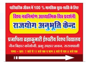 Saraipali latest news : सरायपाली ! आगामी 24 सितंबर को प्रजापिता ब्रम्हकुमारी ईश्वरीय विश्वविद्यालय माउन्टआबू के प्रख्यात व ओजस्वी प्रखर आध्यात्मिक वक्ता ब्रम्हकुमार भगवान जी का आगामी 24 सितंबर को सरायपाली आगमन हो रहा है । वे अपने सरायपाली प्रवास के दौरान विभिन्न विद्यालयों व महाविद्यालययों में बच्चो के जीवन ने व्यवहारिक व आत्मिक जीवन मे सकारात्मक परिवर्तन से संबंधित विषयों व जीवन मे स्वस्थ व स्वच्छ जीवन क्यों आवश्यक है तथा इसका जीवन पर क्या व कैसे प्रभाव पड़ता है इससे संबंधित व्याख्यान छात्र छात्राओं को देंगे ।