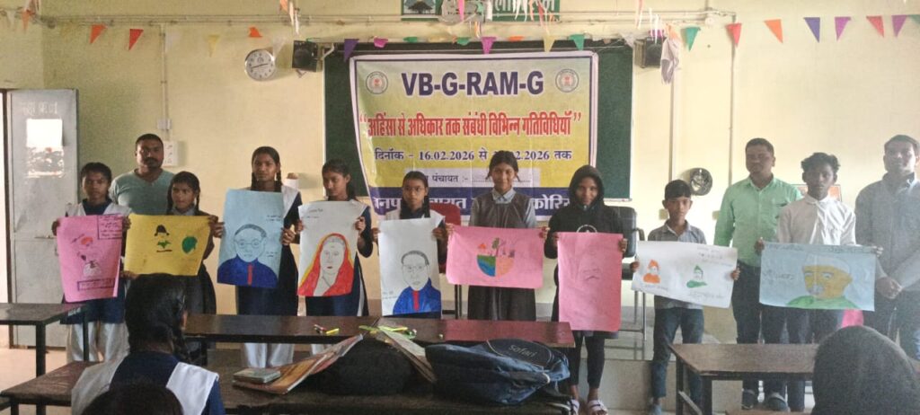 कोरिया 24 फरवरी 2026/ विकसित भारत ग्रामीण रोजगार आजीविका मिशन यानी वीबी जीरामजी से नई पीढ़ी को जोड़ने के लिए तरह तरह की सूचना शिक्षा संचार की गतिविधियों का आयोजन किया जा रहा है। कलेक्टर कोरिया श्रीमती चंदन त्रिपाठी के मार्गदर्शन में विद्यालयों में भी आईइसी गतिविधियों का आयोजन किया जा रहा है। इसके तहत आने वाले समय में पंजीकृत श्रमिकों को मिलने वाले प्रत्येक हितलाभ के संबध में व्यापक जनसंवाद कार्यक्रम आयोजित किए जा रहे हैं।