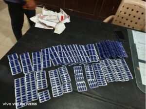 जहां पर एक लडका सफेद टी शर्ट नीला जींस पहना हाथ में लाल सफेद रंग के थैला रखा दिखा जिसको जाकर हमराह स्टाफ एवं गवाह के रेड कार्यवाही किया गया संदेही सूर्य प्रताप सिंह सब्जी मंडी डोंगिया में मिला जिसका नाम पता पुछने पर अपना नाम सूर्य प्रताप सिंह राजपूत पिता कौशल सिंह उम्र 18 साल 06 माह साकिन वार्ड क्रमांक 08 साई मंदिर के पास सक्ती थाना सक्ती का बताया जिसके कब्जे से NDPS ACT के तहत विघिवत कार्यवाही करते हुए 115 पत्ता प्रत्येक पत्ता में 08-08 नग प्रतिबंधित नशीली केप्सुल pyeevon spas plus लिखा प्रत्येक पत्ते की कीमत 72 रूपये लिखा जुमला मादक प्रदार्थ नशीली केप्सुल 920 नग जुमला कीमती 8280 रूपये आरोपी के कब्जे से बरामद किया गया । आरोपी को उक्त नशीला टेबलेट के संबंध नोटिस देने पर कोई वैध कागजात व लायसेंस नहीं होना लिखित में दिये जाने पर समक्ष गवाहान मुता. जप्ती पत्रक के जप्त कर कब्जा पुलिस लिया गया।आरोपी का कृत्य अपराध धारा सदर का घटित करना पाये जाने पर विधिवत गिरफ्तार कर न्यायिक रिमांड लेकर जेल भेजा गया है।