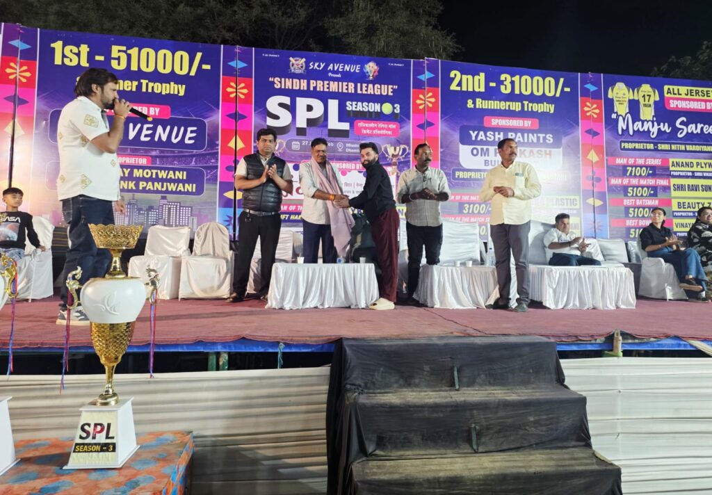 उसकी मजबूत बुनियाद खिलाड़ी भावना को अपने में समाहित क्रिकेट का यह मैदान के साथ ही इस पवित्र खेल से ही निर्मित होगा। वही अध्यक्षता कर रहे समाज के होनहार युवा तथा नगर निगम के लोक निर्माण विभाग अध्यक्ष एवं आमापारा वार्ड के पार्षद विजय मोटवानी ने कहा कि ऐसे आयोजन समाज की खेल प्रतिभाओं को तरस कर सामने लाने का एक सशक्त एवं सार्थक मंच बनता है और यहीं से आगे चलकर खिलाड़ी विभिन्न प्रतिस्पर्धा में अपना उत्कृष्ट प्रदर्शन करते हुए समाज का नाम रोशन करेंगे इस अवसर पर नगर निगम के पार्षद गण पिंटू यादव एवं कुलेश सोनी भी उपस्थित रहे। कार्यक्रम का संचालन बंटी वाधवानी द्वारा तथा आभार प्रकट विजय मोटवानी ने किया।