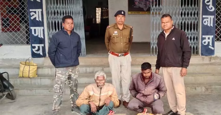 थाना लैलूंगा प्रभारी उप निरीक्षक गिरधारी साव के नेतृत्व में ग्राम कुंजारा बस स्टैंड के पास घेराबंदी कर भेखराम यादव निवासी सिहारधार एवं रूपसिंह सिदार को पकड़ा गया। मुखबिर की सूचना पर की गई इस कार्रवाई में आरोपियों के कब्जे से 4.277 ग्राम गांजा (कीमत लगभग 32,000 रुपये), एक मोबाइल फोन एवं 420 रुपये नकद जब्त किए गए। दोनों आरोपियों के विरुद्ध थाना लैलूंगा में धारा 20(बी) एनडीपीएस एक्ट के तहत अपराध पंजीबद्ध कर न्यायिक रिमांड पर भेजा गया। इस कार्रवाई में एएसआई परमेश्वर गुप्ता, आरक्षक संतराम निषाद एवं गोविंद बनर्जी शामिल रहे।