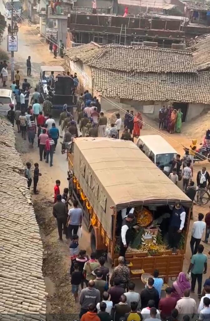 सीआरपीएफ के जवान स्व.भगवान सिंह यादव के अंतिम संस्कार की पूरी प्रक्रिया विभागीय तौर पर सेना के असिस्टेंट कमांडर हेमंत शर्मा द्वारा पूरी की गई ।