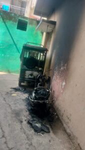राजधानी रायपुर में नशे में चूर बदमाशों के हौसले इतने बुलंद हैं कि उसके ही गलती पर रोक टोक करना आपको भारी पड़ सकता हैं और तो और जान भी गवानी पड़ सकती हैं…. ताज़ा मामला जोरापारा इलाके में गुरुवार रात को एक गृहिणी व उसके परिवार को नशेड़ी आरोपी ने बटनदार चाकू लेकर धमकाया और गाली-गलौज करते हुए चला गया। देर रात गृहिणी के घर के सामने खड़ी उनकी ई रिक्शा व एक्टिवा दुपहिया को आग के हवाले कर दिया गया। सुबह चार बजे हो-हल्ला होने पर घरवाले जागे, तब तक दोनों वाहन पूरी तरह जल चुके थे। पुलिस ने इस मामले में बाबूलाल पाटले के खिलाफ धमकी तथा आगजनी का