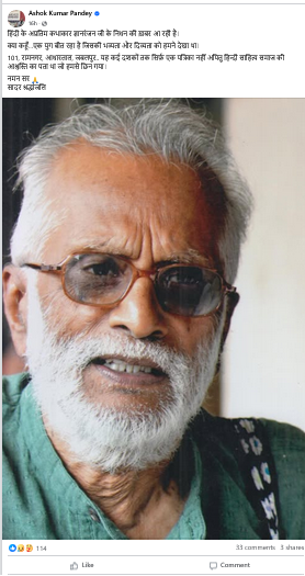 कहानीकार और कवि अशोक कश्मीर ने लिखा-