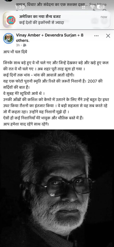 अमूमन दोस्तो या प्रिय लेखकों या कलाकारों के निधन पर पोस्ट नहीं लिखता। मन इतना भर जाता है कि लिखते नहीं बनता।