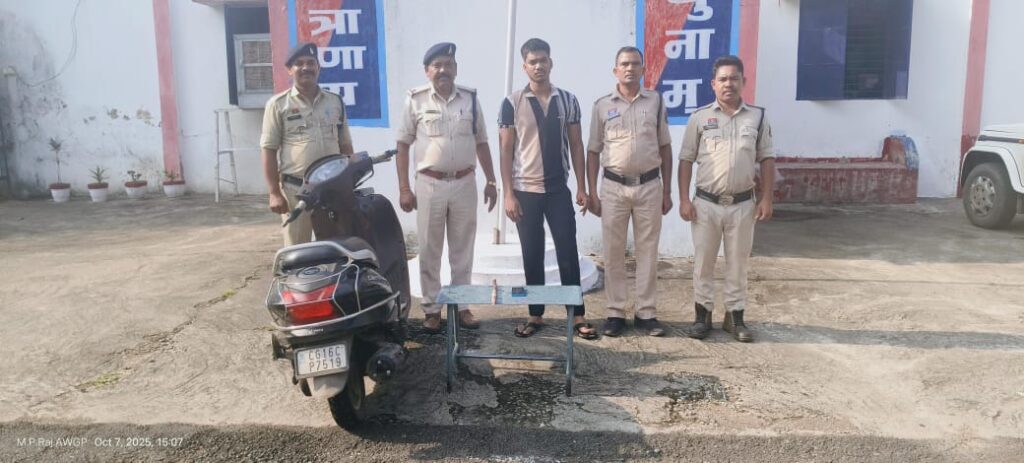 सूचना मिलते ही पुलिस ने तत्परता से जांच शुरू की। संदेह के आधार पर पूछताछ में आरोपी बबन कुमार बसोर (18 वर्ष) निवासी केटीसी कॉलोनी चरचा ने अपराध स्वीकार किया। उसकी निशानदेही पर पुलिस ने एक नोकिया मोबाइल और घटना में प्रयुक्त स्कूटी बरामद की। आगे की पूछताछ में बबन ने अपने दो नाबालिग साथियों के साथ मिलकर चोरी की वारदात को अंजाम देने की बात कबूली। दोनों विधि-विरुद्ध बालकों को पूर्व में गिरफ्तार कर लैपटॉप, मोबाइल, हार और दो बैग बरामद किए जा चुके हैं।
