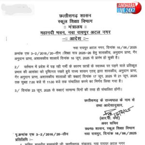स्कूल शिक्षा विभाग के अवर सचिव आर पी वर्मा के के हस्ताक्षर से नया आदेश जारी किया गया है. जिसमें प्रदेश में गर्मी की स्थिति को देखते हुए स्कूलों के समय में परिवर्तन करने का आदेश दिया गया है. जिसके अुनसार 17 से 21 जून तक प्रदेश के सभी स्कूल सुबह 7 बजे से 11 बजे तक संचालित होगी. 23 जून से सभी स्कूल सामान्य दिनों की भांति संचालित होगी