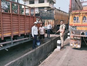 कार्यवाही के इसी अनुक्रम में आज दिनांक को अतिरिक्त पुलिस अधीक्षक यातायात रायपुर डॉ. प्रशांत शुक्ला व अतिरिक्त पुलिस अधीक्षक(रायपुर पश्चिम) दौलत राम पोर्ते के निर्देशन पर उप पुसिल अधीक्षक यातायात सतीष ठाकुर के नेतृत्व में थाना प्रभारी यातायात टाटीबंध निरीक्षक भुनेश्वर साहू एवं थाना प्रभारी कबीर नगर थाना आमानाका स्टाफ व रक्षित केंद्र से प्राप्त दल बल के साथ रिंग रोड नम्बर 01 व 02 में नो पार्किंग में खड़ी मालवाहक वाहनों के विरूद्ध विशेष अभियान चलाते हुए 63 मालवाहक वाहनों के विरूद्ध मौके पर ई-चालान की कार्यवाही की गई एवं 09 वाहनों के विरूद्ध BNS की धारा 285 के तहत कार्यवाही करते हुए प्रकरण माननीय न्यायालय भेजने की कार्यवाही की गयी।