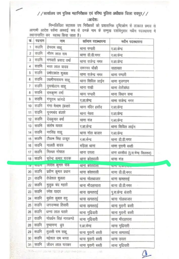 रायपुर पुलिस अधीक्षक ने साफ संदेश दिया था कि अब किसी भी थाने या चौकी में वर्षों से
