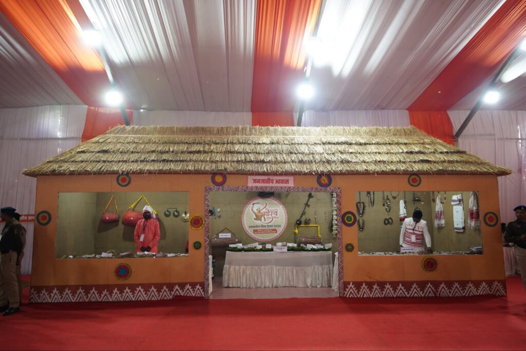 कार्यक्रम स्थल में छत्तीसगढ़ में निवासरत जनजातियों के पारंपरिक आवास का मॉडल बनाया गया था। राष्ट्रपति ने आवास मॉडल का भी अवलोकन किया। जनजातियों का आवास मिट्टी, लकड़ी से निर्मित होते हैं, जिसमें एक या दो कमरे व मुख्य कमरे के सामने की ओर परछी (बराम्दा) बने होते हैं। घर के छप्पर में ढालनुमा खपरैल लगे होते हैं। एक कमरे को रसोई कक्ष के रूप में उपयोग करते हैं, जिसमें रसोई उपकरण व घरेलू सामान रखते हैं, दूसरे कक्ष को शयन कक्ष के रूप में उपयोग करते हैं। परछी (बराम्दा) में अन्य घरेलू सामान जैसे ढ़ेकी, मूसल, सील-बट्टा, जांता आदि उपकरण होते हैं।